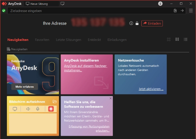 Während der Sitzung sehen Sie jederzeit, was passiert, und können die Verbindung selbst beenden. Sobald Sie AnyDesk schließen, ist der Zugriff vollständig beendet.